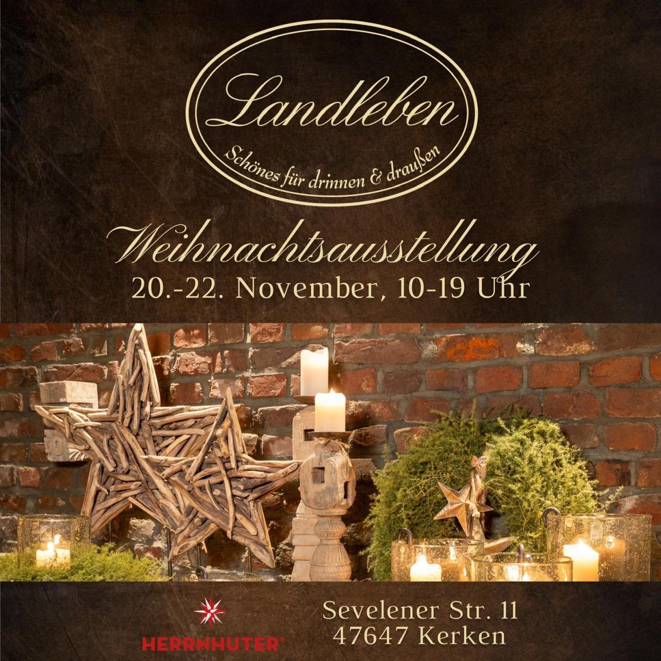 Auch in diesem Jahr laden wir Sie herzlich zu Landlebens Weihnachtsausstellung im Laden und auf dem Hof ein. Vom 20. bis 22. November 2025 erwarten Sie festliche Dekorationen, stimmungsvolle Geschenkideen und eine ganz besondere weihnachtliche Atmosphäre. An diesen Tagen gelten unsere abweichenden Öffnungszeiten von 10 bis 19 Uhr. Wir freuen uns auf Ihren Besuch!